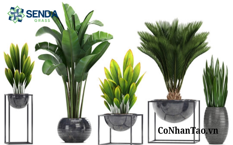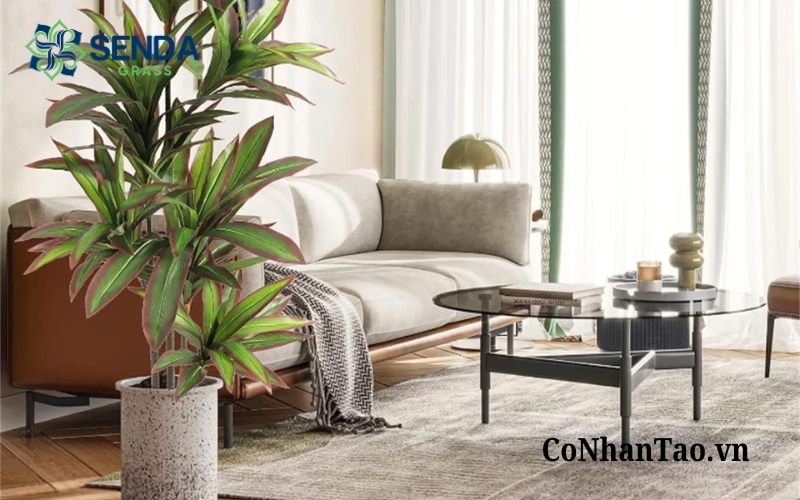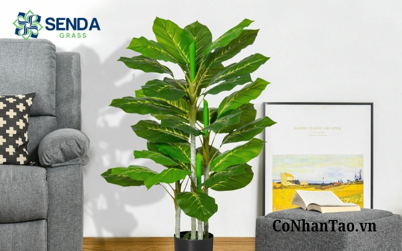 Những loại cây như bàng Singapore giả, cây chuối cảnh giả, cây cọ giả, cây trúc giả hoặc các chậu hoa lớn đặt sàn thường giúp không gian trở nên sang trọng, có chiều sâu và thu hút hơn. Tuy nhiên, khi chọn cây lớn, bạn nên đo trước diện tích vị trí đặt để đảm bảo cân đối với nội thất xung quanh.