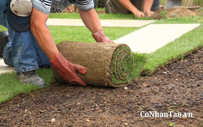 Thi công là yếu tố quan trọng nhưng thường bị xem nhẹ. Nếu nền không bằng phẳng, không tạo độ dốc thoát nước hoặc không xử lý chống thấm kỹ, cỏ nhân tạo có thể nhanh xuống cấp. Mép nối dán không chắc sẽ dẫn đến bong tróc sau thời gian ngắn.